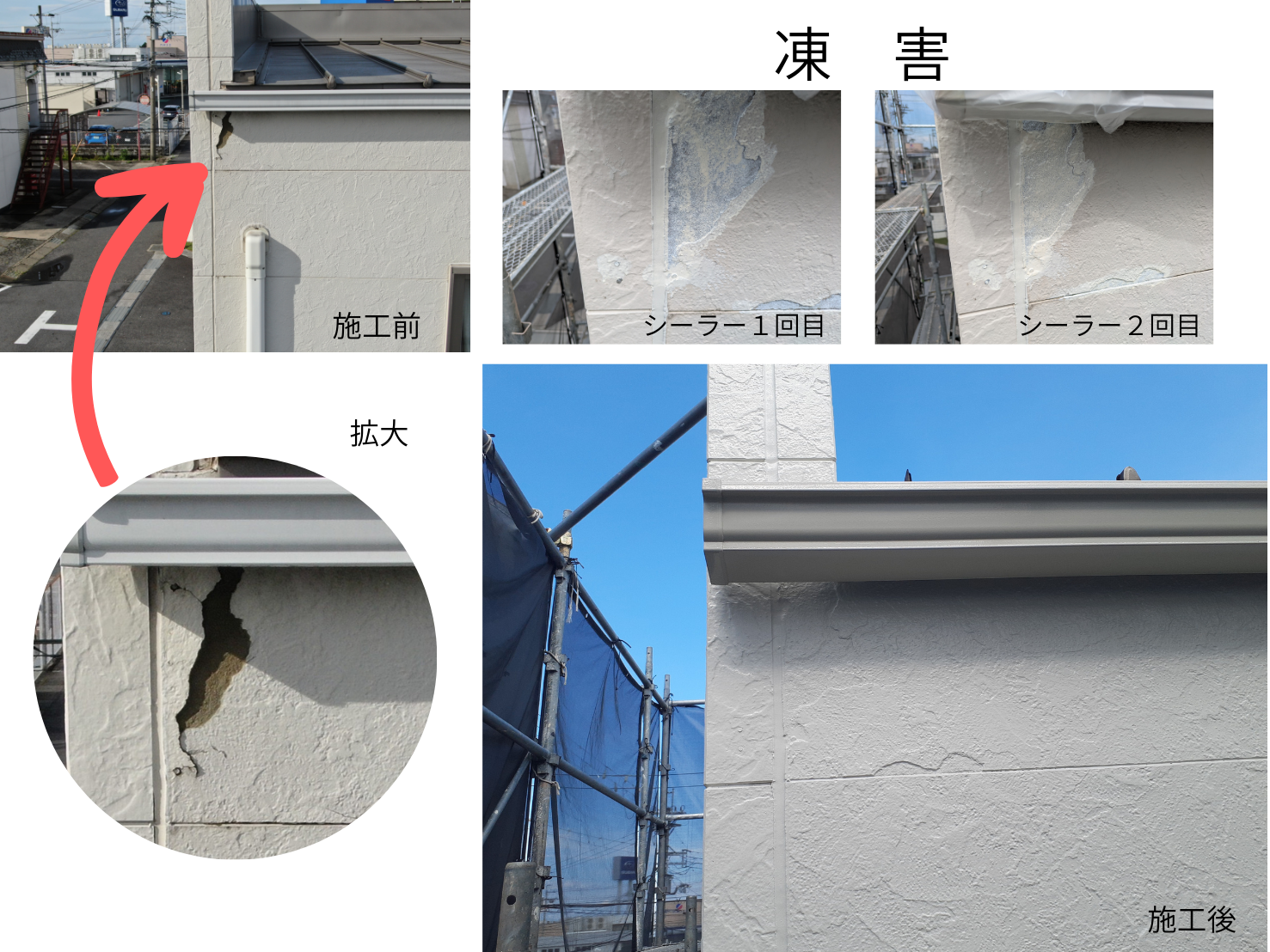 凍害発生部も入念に下地処理をおこない!